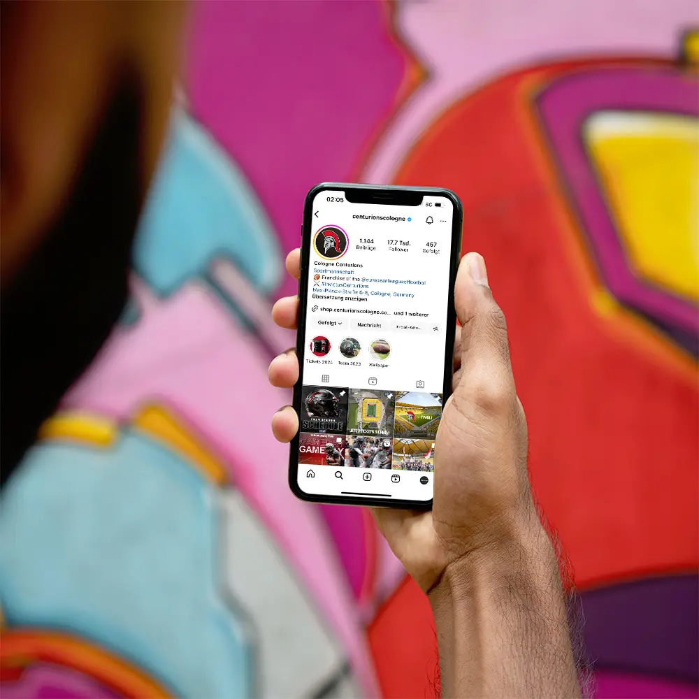 Die von uns kreierten Social-Media-Templates ermöglichen es den Centurions, regelmäßige Posts in einheitlichem und professionellem Look zu produzieren und so langfristig eine florierende Fan-Gemeinschaft aufzubauen. Der noch relativ junge Verein hat damit das Ziel, die eigene Marke bekannter zu machen und die Zuschauerzahlen bei den Heimspielen zu erhöhen. Mit über 18.000 Follower:innen ist der Kanal seit Umsetzung der Maßnahmen bereits beträchtlich gewachsen und ein entscheidendes Mittel für die Centurions, sich selbst digital zu vermarkten.